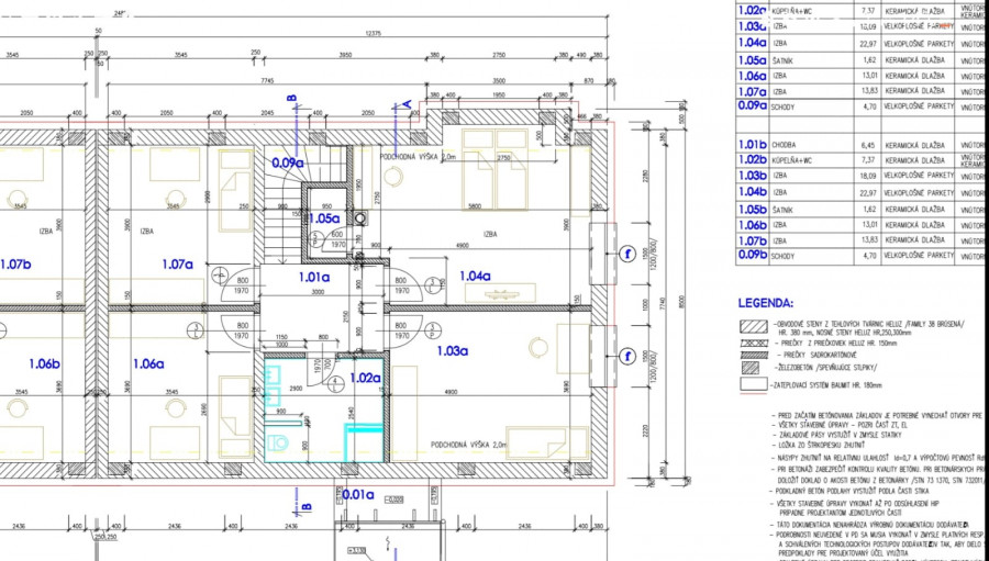 Zastavaná plocha je 103m2 a samotná stavba bola realizovaná s dôrazom na kvalitu a energetickú úspornosť, o čom svedčí použitý materiál Ytong s hrúbkou 37,5 cm doplnený o 20 cm izoláciu. Strecha: krytina značky Tondach so zvodovým systémom KJG, so strešnými oknami Velux. Plastové okná s izolačným trojsklom ktoré sa postarajú o dokonalé ticho a tepelnú pohodu v interiéri. Dom je po technickej stránke kompletne pripravený vrátane drenáže, vsakovacích jám a veľkokapacitného septiku s objemom 12 m³, pričom k dispozícii je platné stavebné povolenie a prípojky na obecný vodovod a elektrinu s výhľadom na budúce vybudovanie kanalizácie.